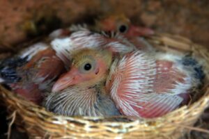 Minggu Pertama: Piyik sangat rentan terhadap perubahan suhu. Mereka diberi makan “milk pigeon,” yaitu cairan protein yang dihasilkan oleh induk dari kelenjar di paruhnya. Pada fase ini, piyik memerlukan kehangatan konstan dan pengawasan agar tidak kedinginan.